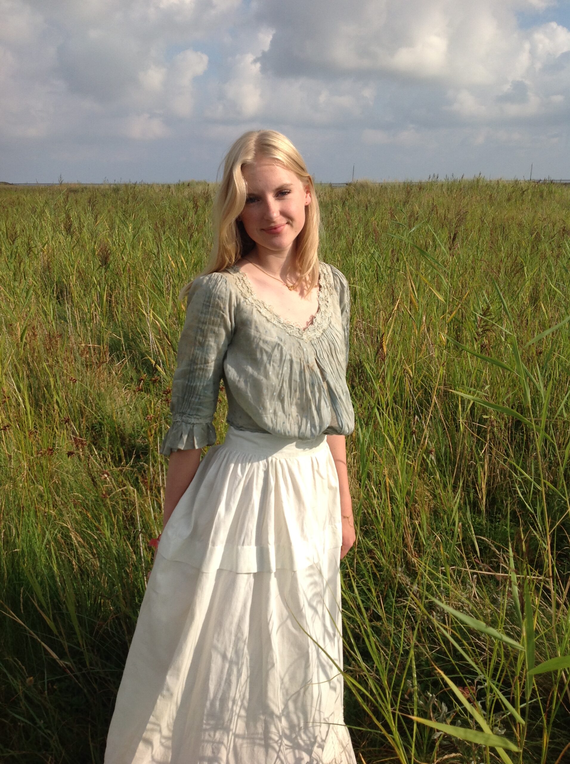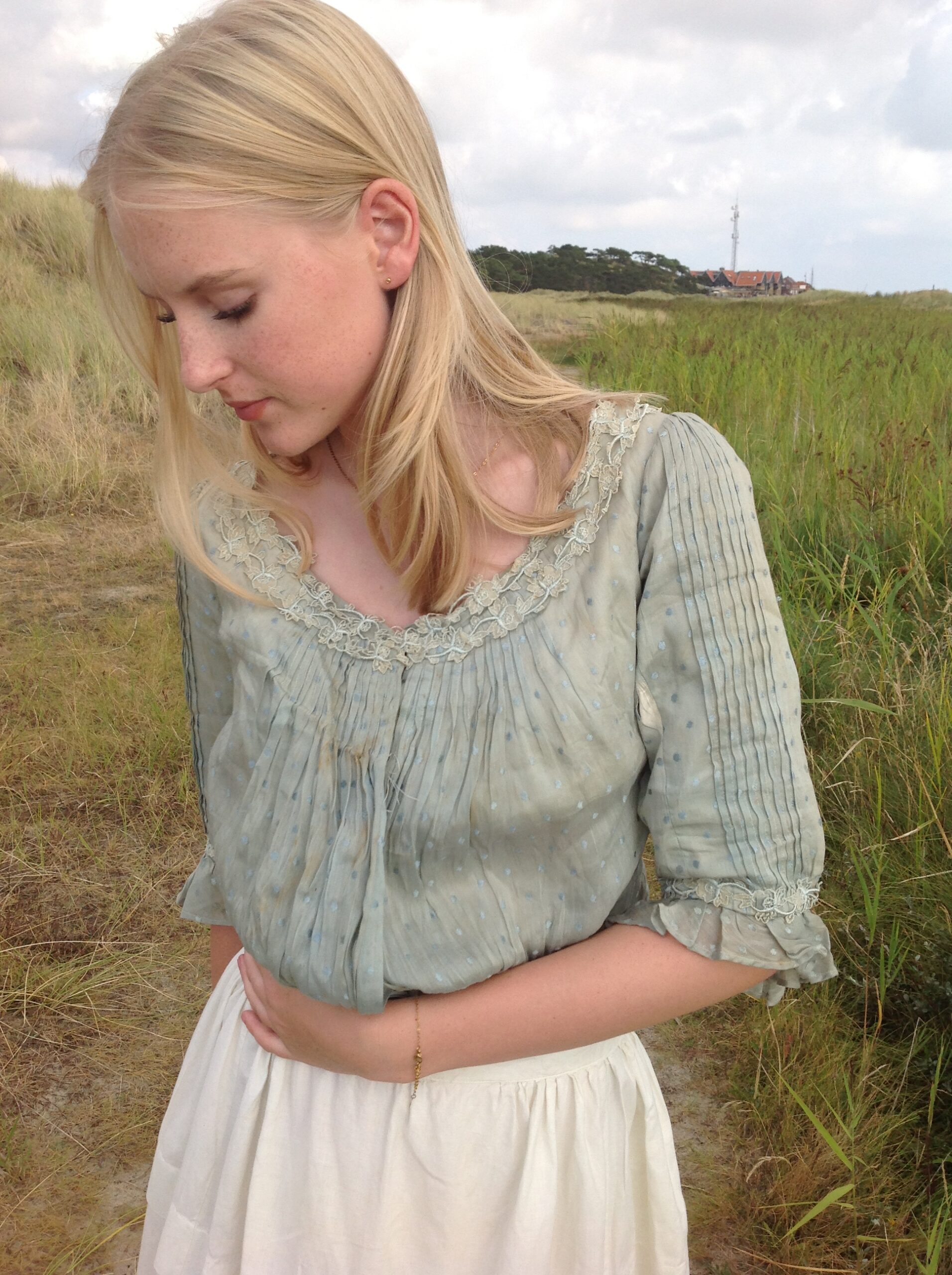 This old blouse has some staining as you see in photo 3, and there is a bit shredded silk at the left sleeve near the underarm. The blouse has no underarm discoloration