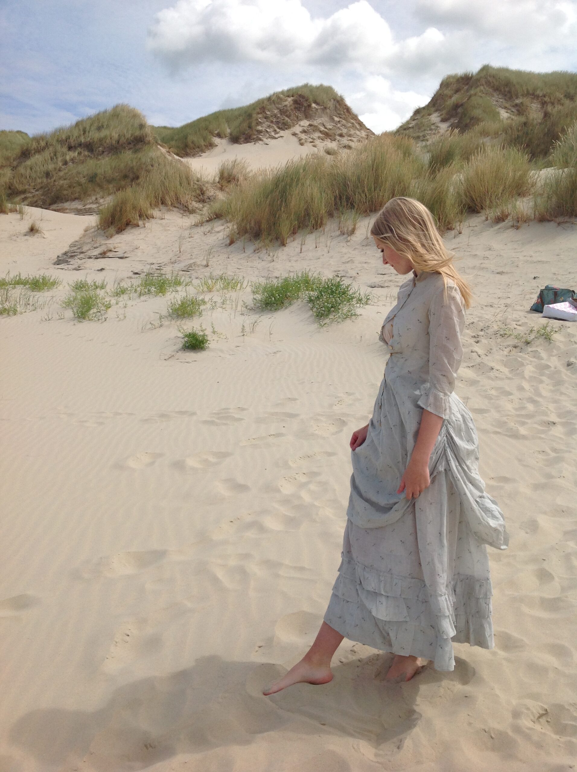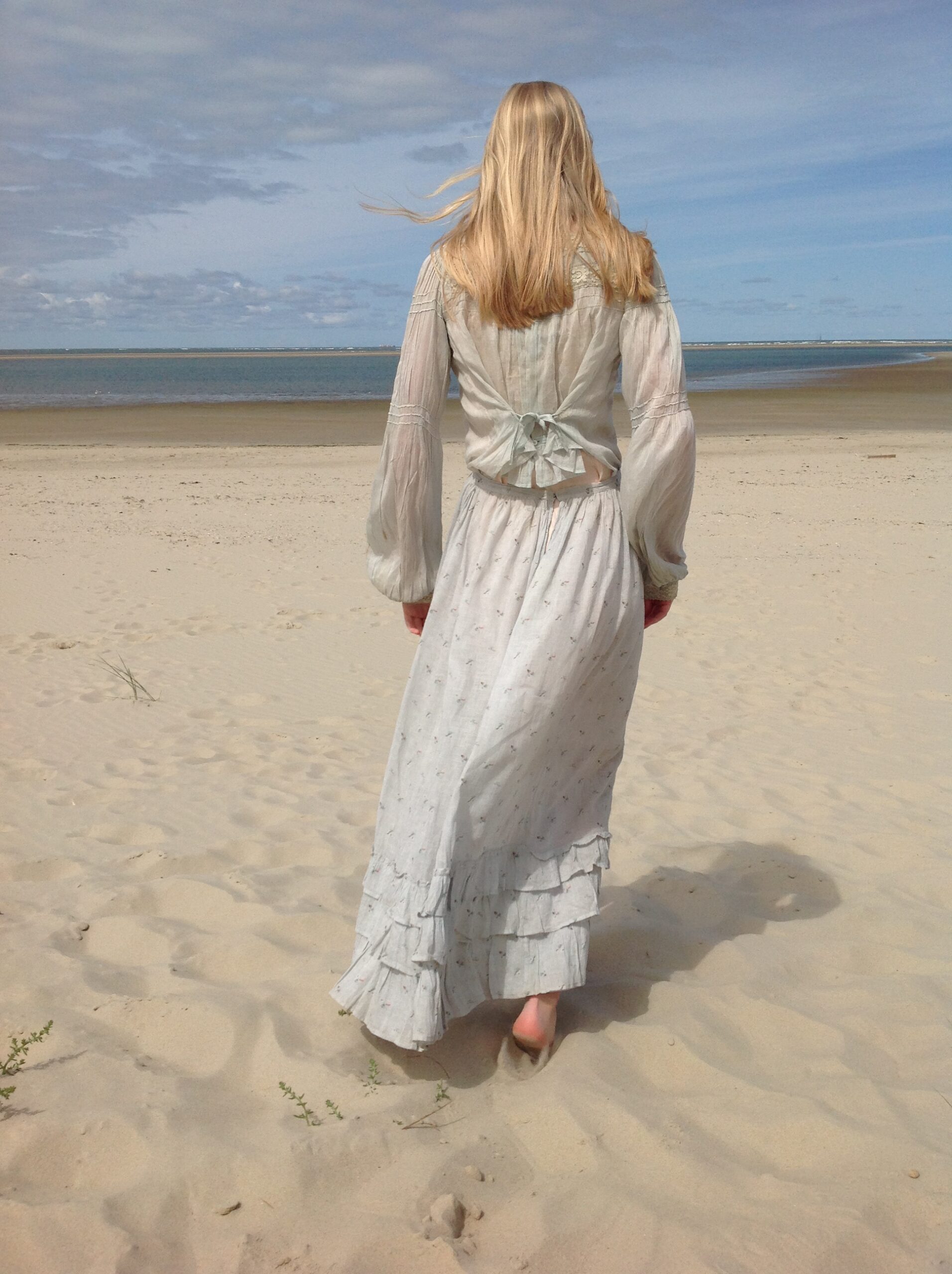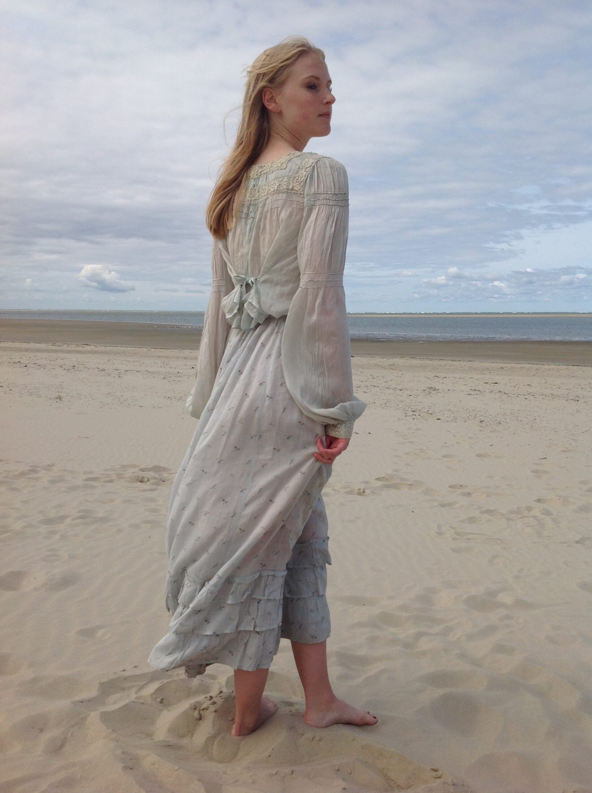 Lovely antique two piece dress consisting of a floral print skirt and a polonaise jacket. In the first 5 pictures my model is wearing a blouse with very long sleeves. This is not included in this listing.