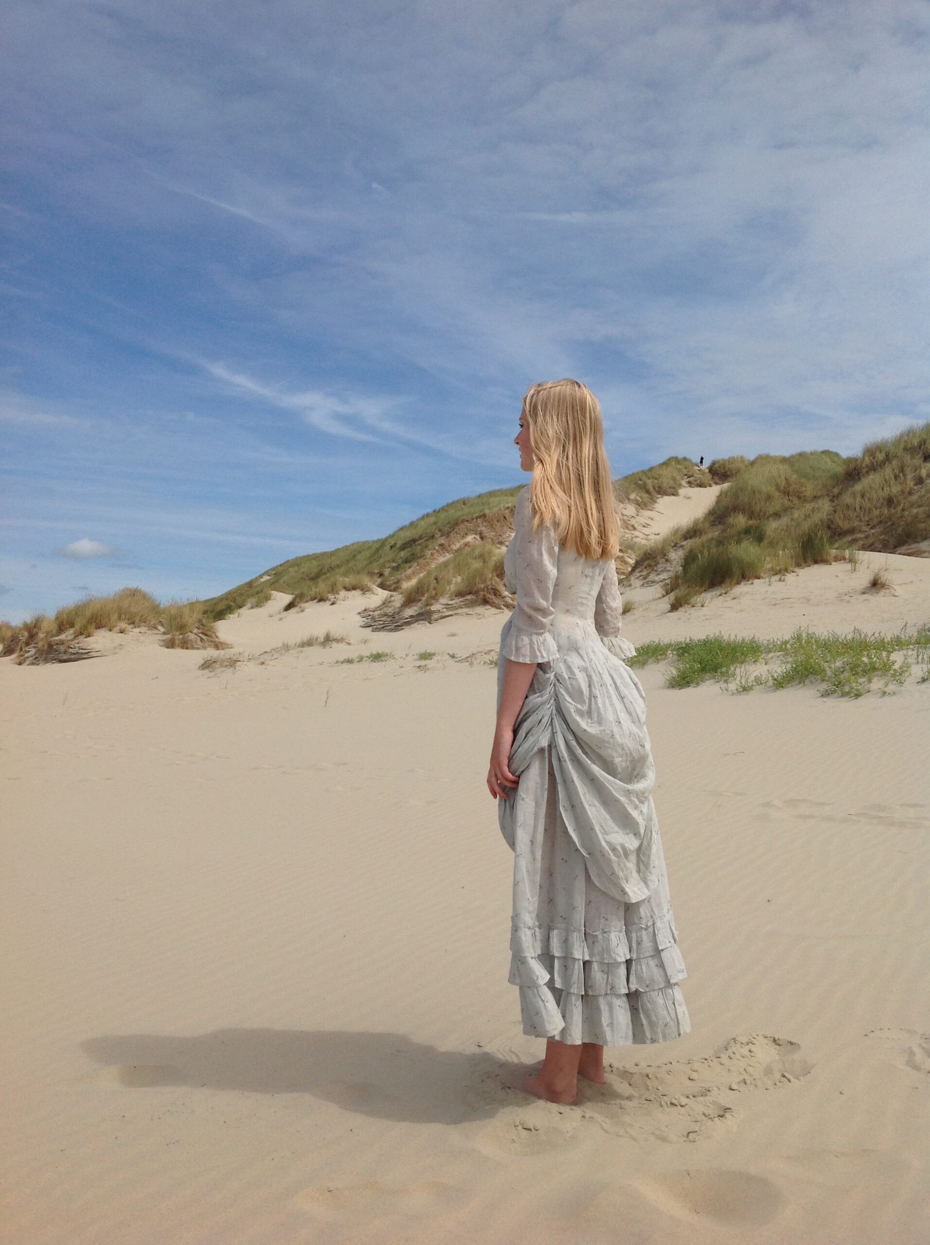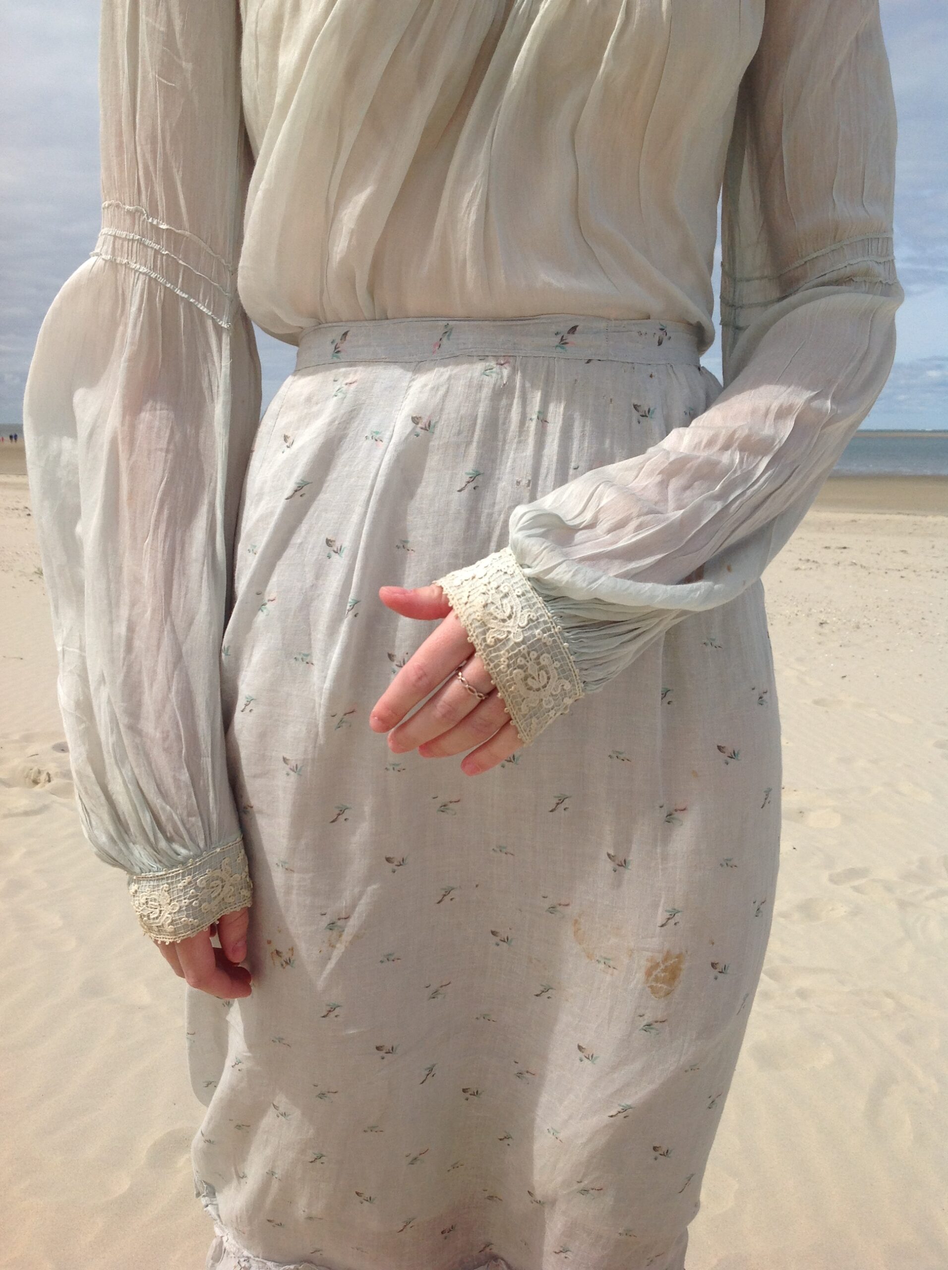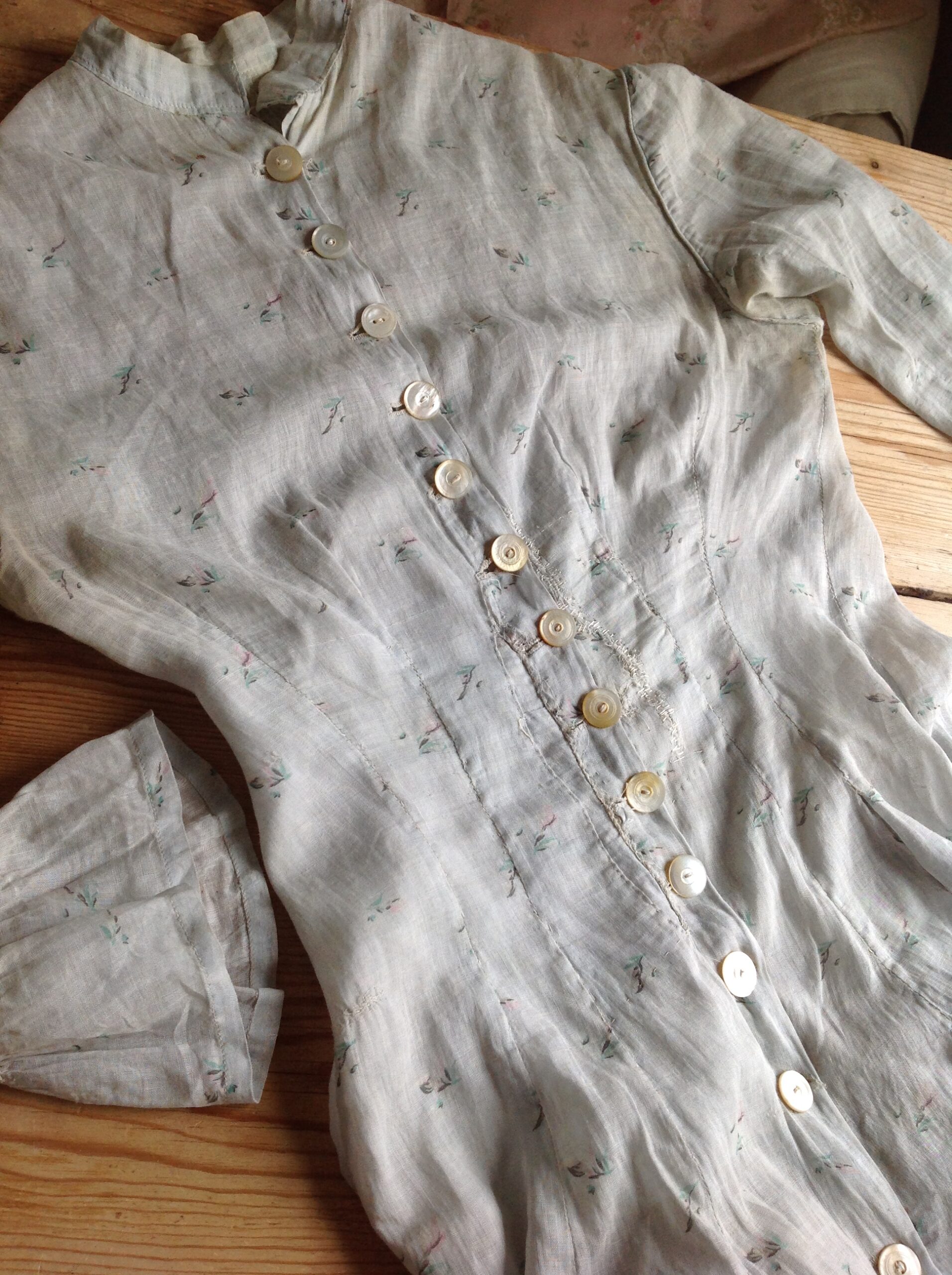 The polonaise jacket is very small and it has many repairs at the front. The jacket has quite a lot of discolorations too. Nevertheless, it is absolutely beautiful!