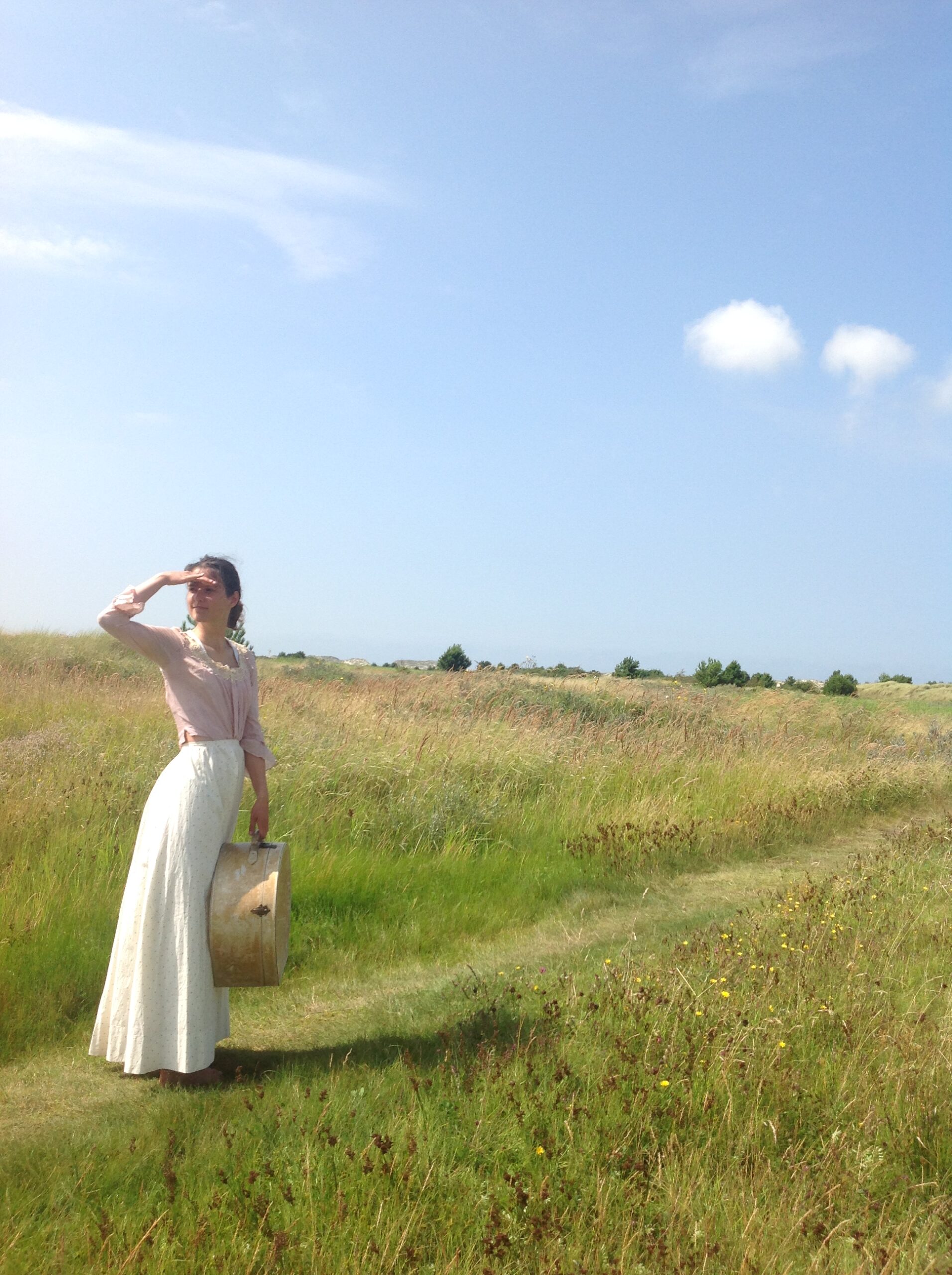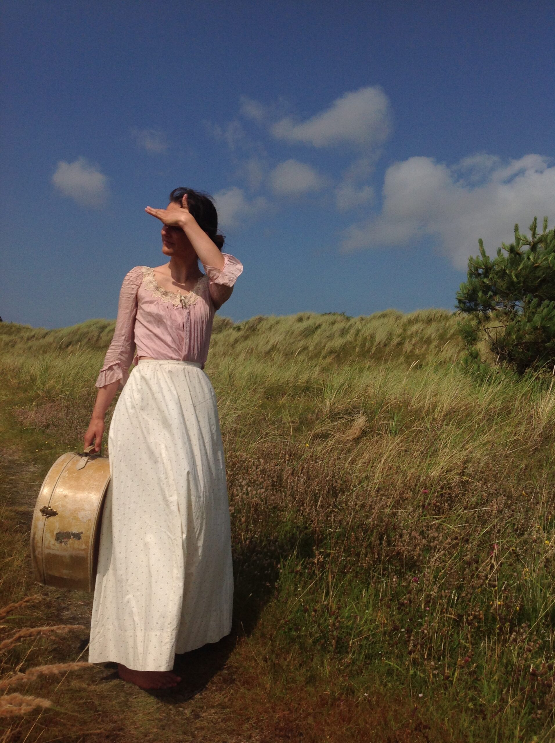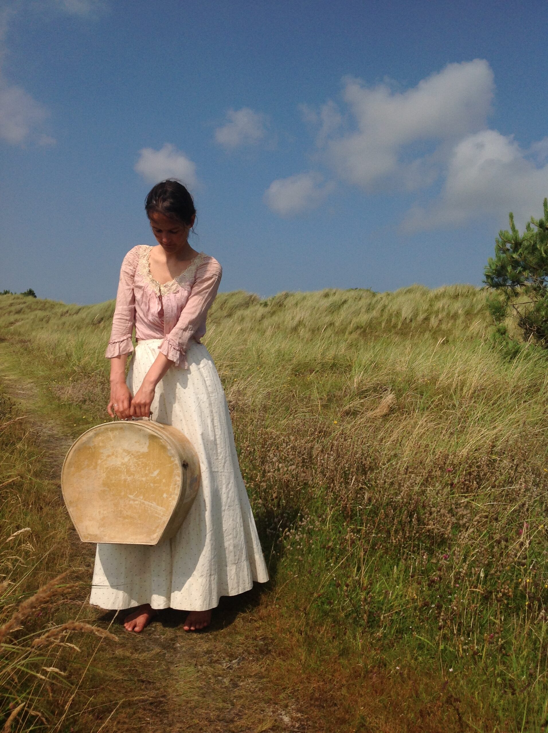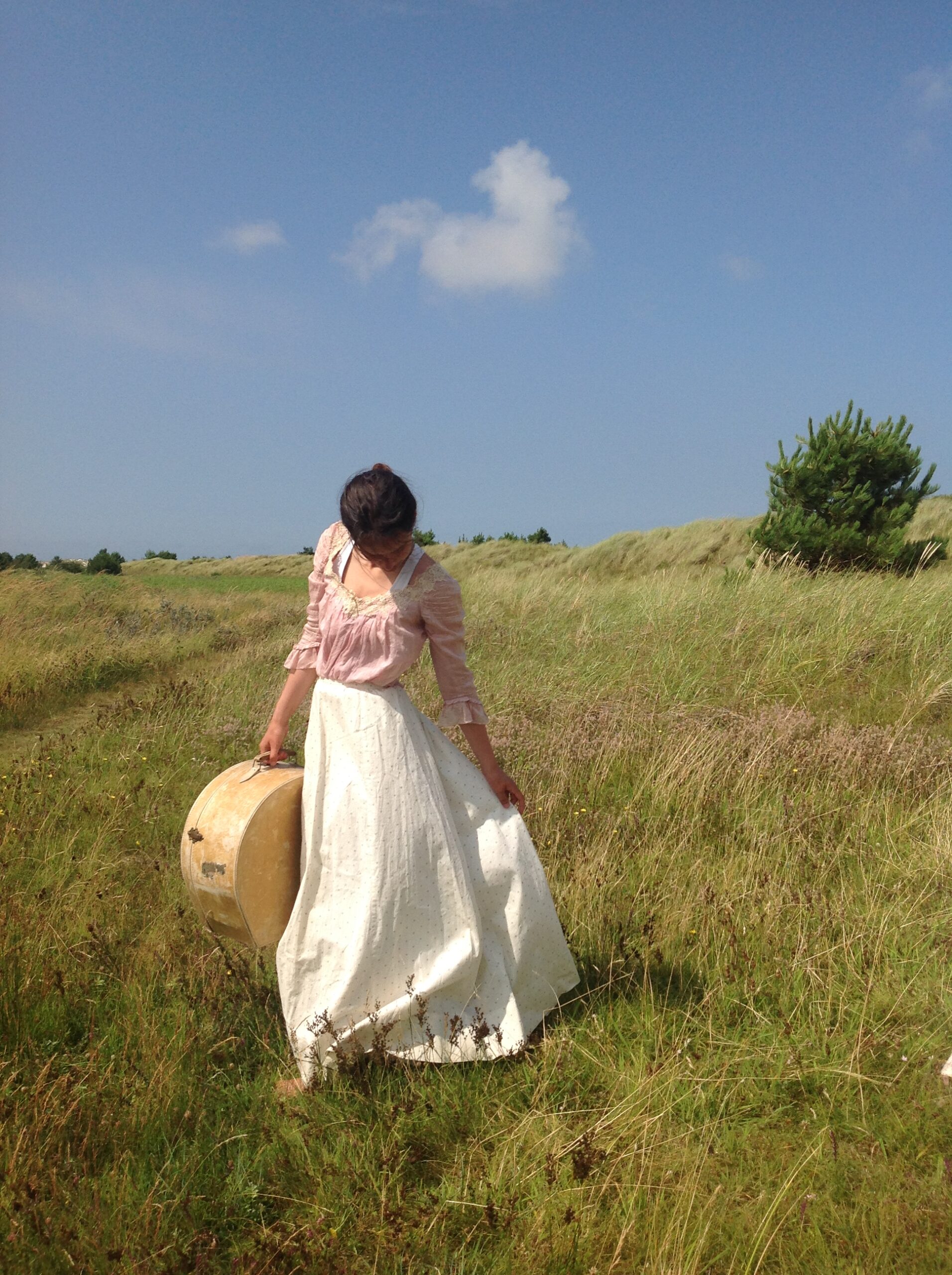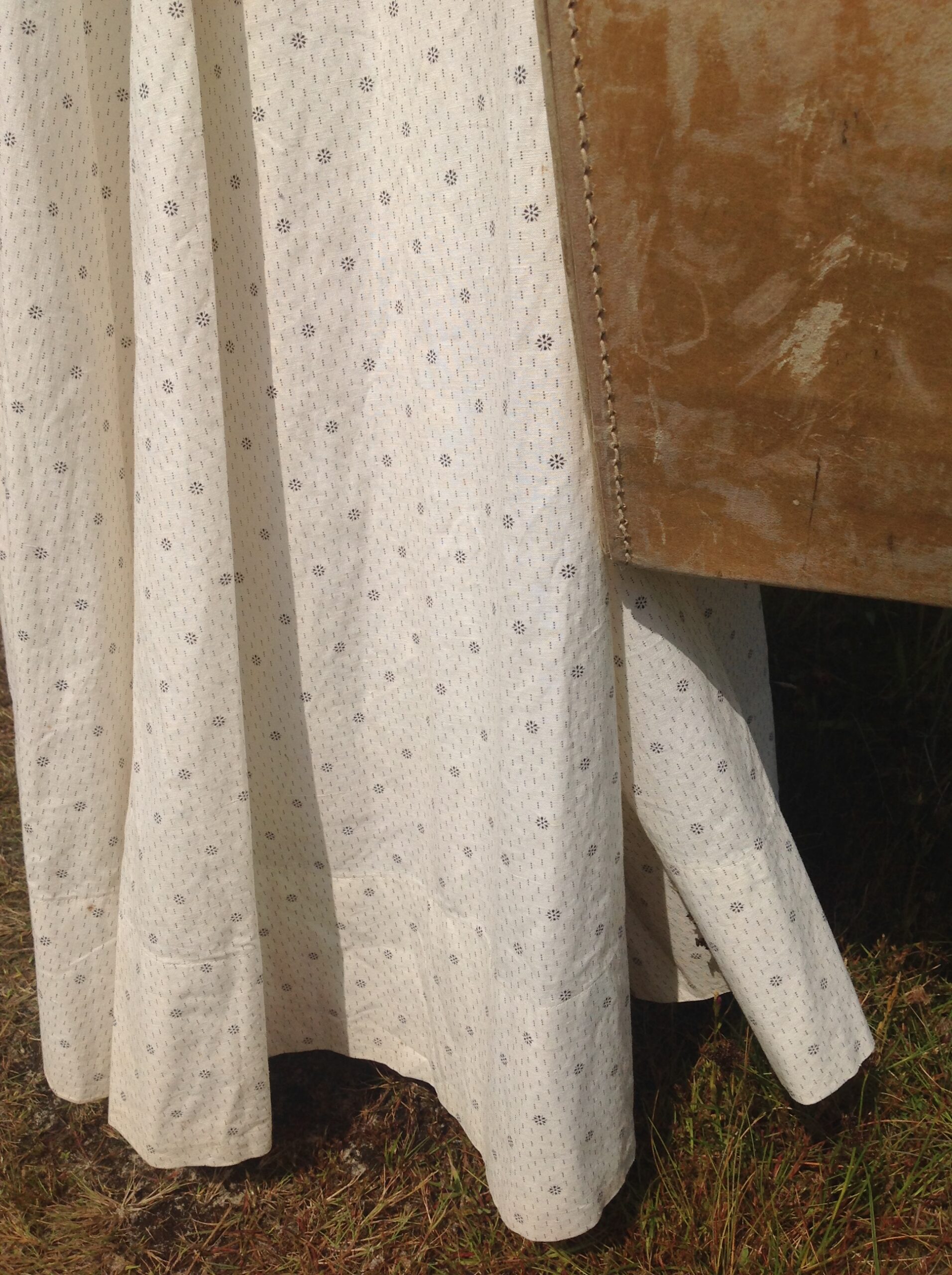 A very strong cotton print skirt in excellent condition. It’s cream white with a tiny gray print. There is only a little spot near the hemline at the back and a small stain on the back. I saw 2 hidden repairs.