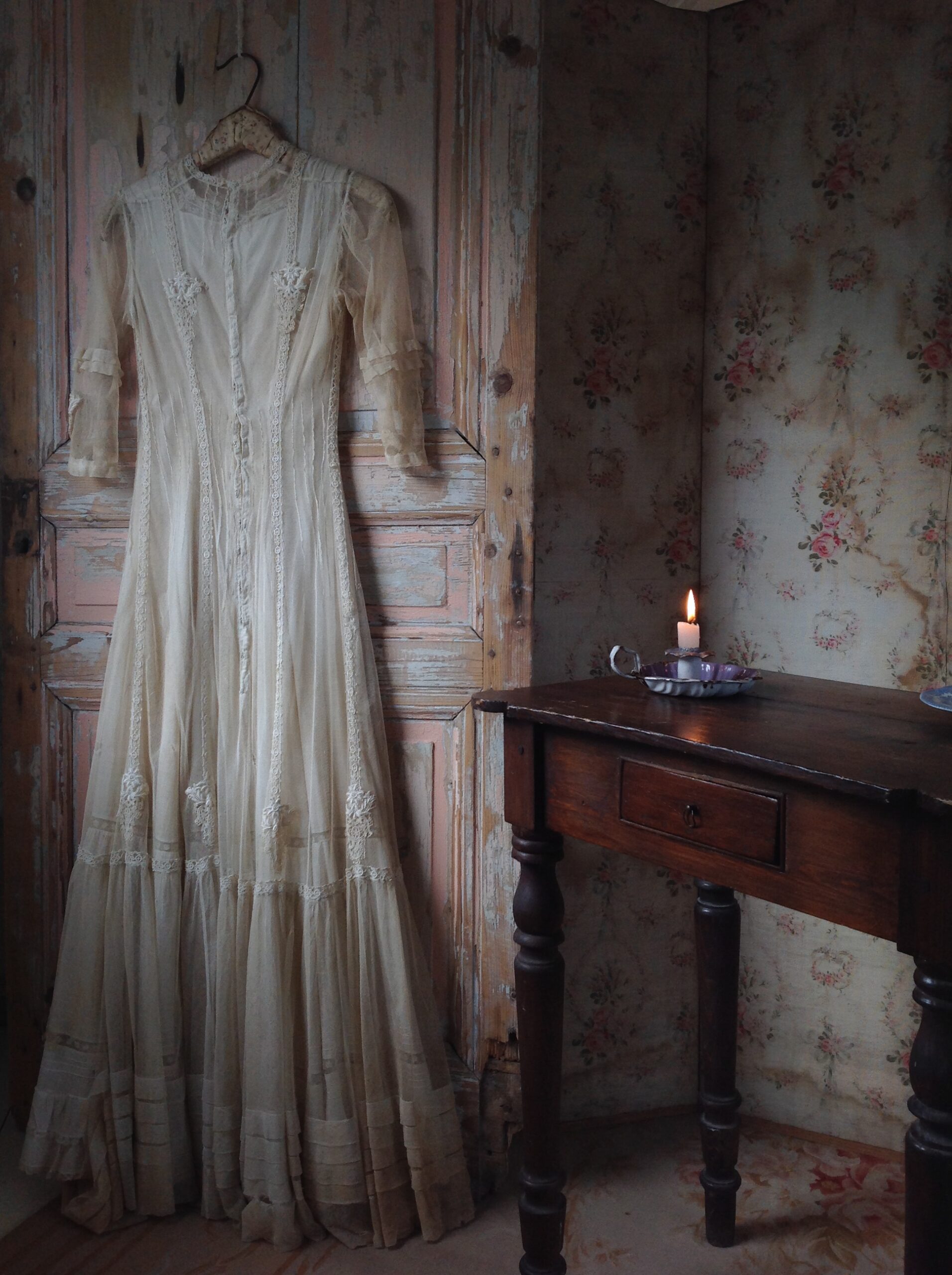Amazing Silk and Tulle Lace Edwardian Wedding Gown