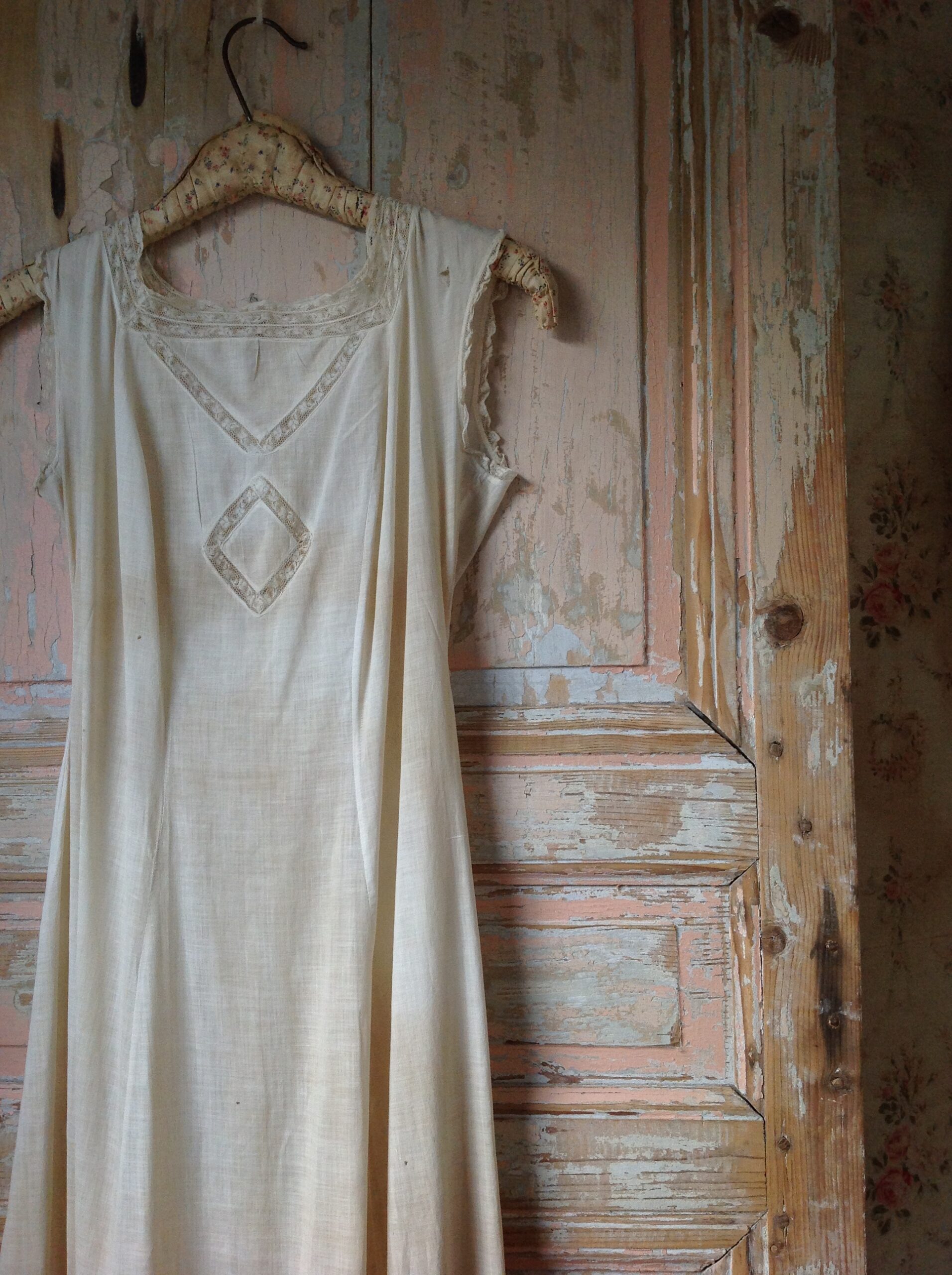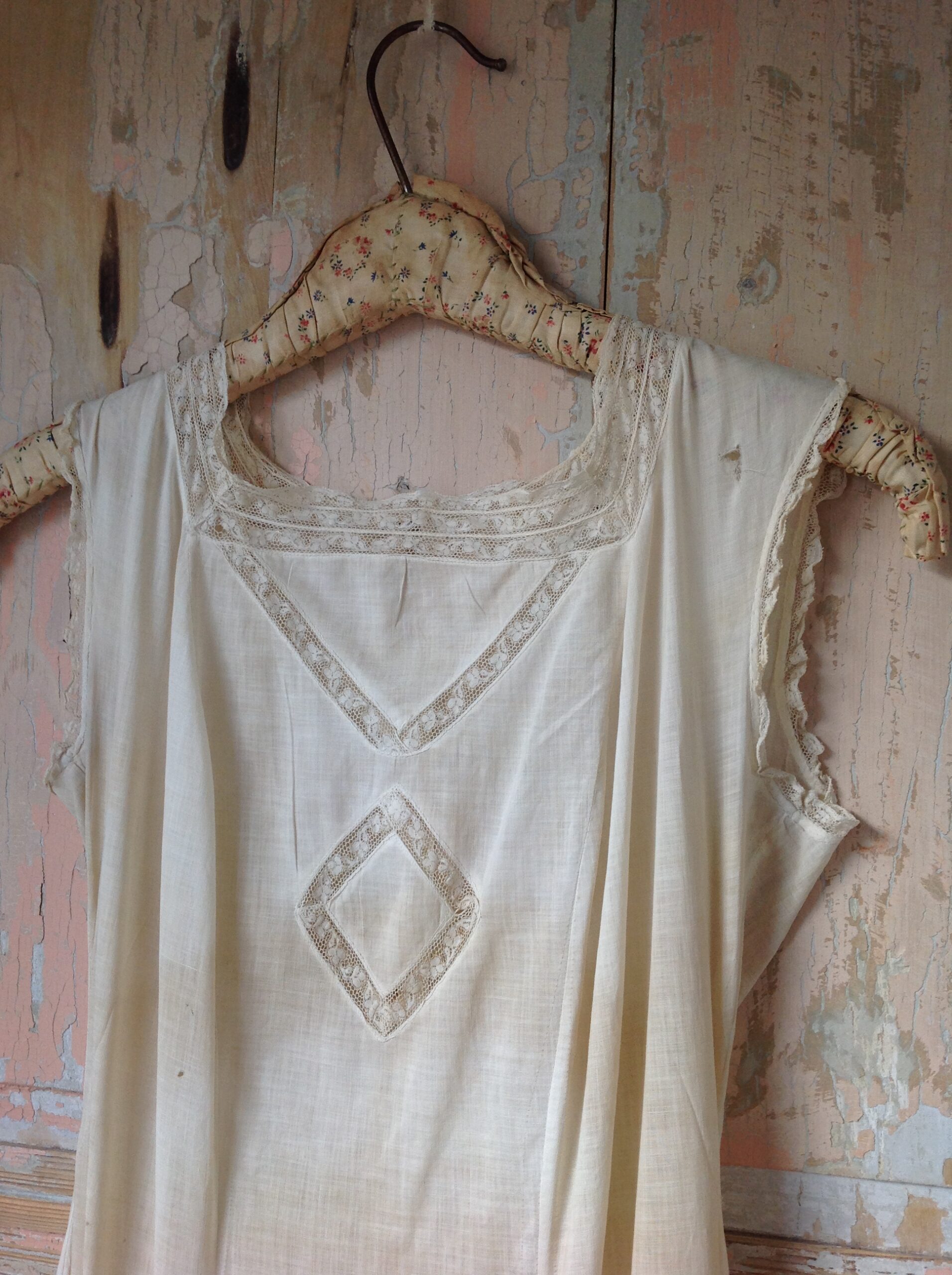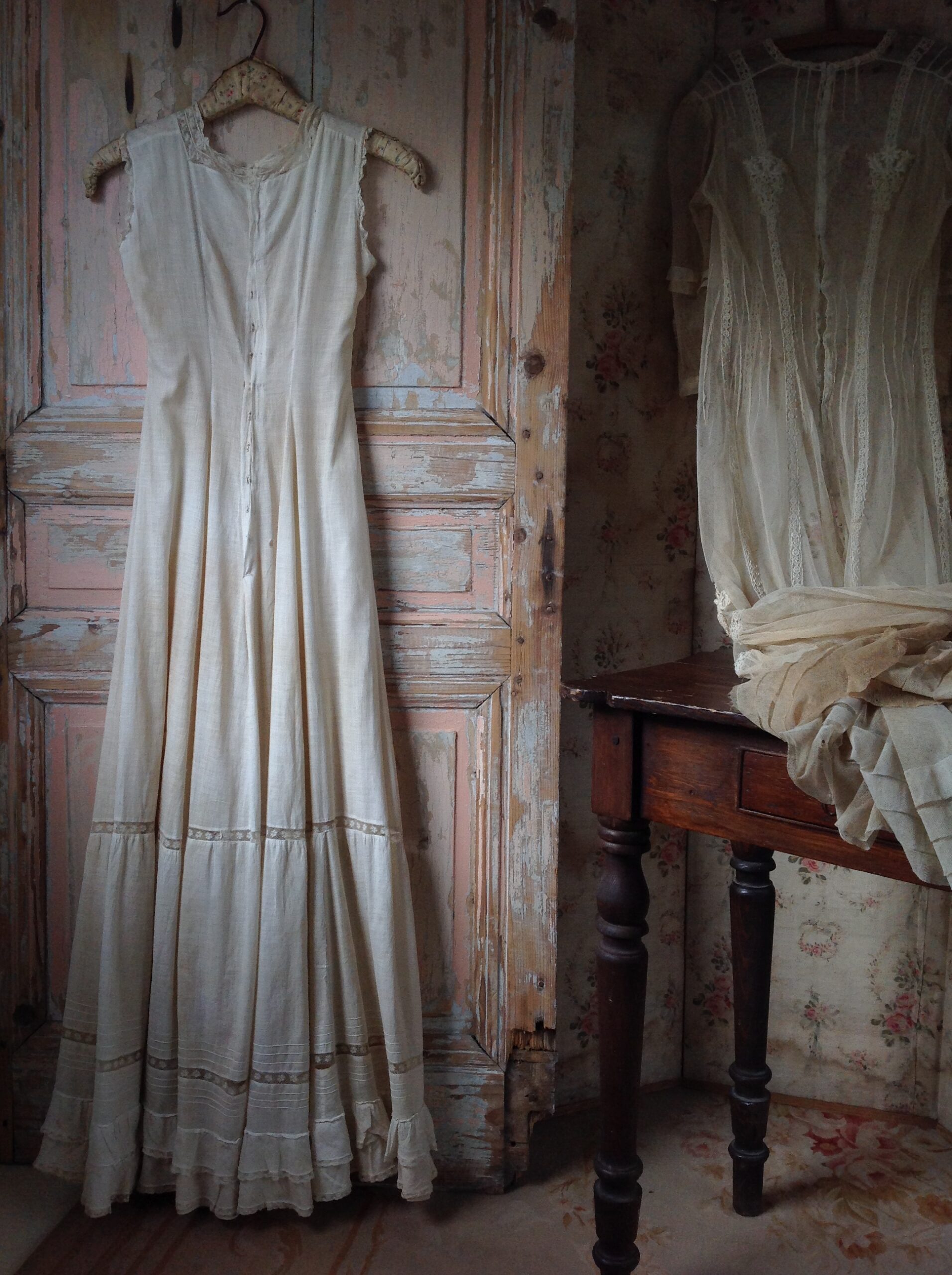 Very Old Tulle Lace Wedding / Slip Dress With Cotton and Lace from the 1880s